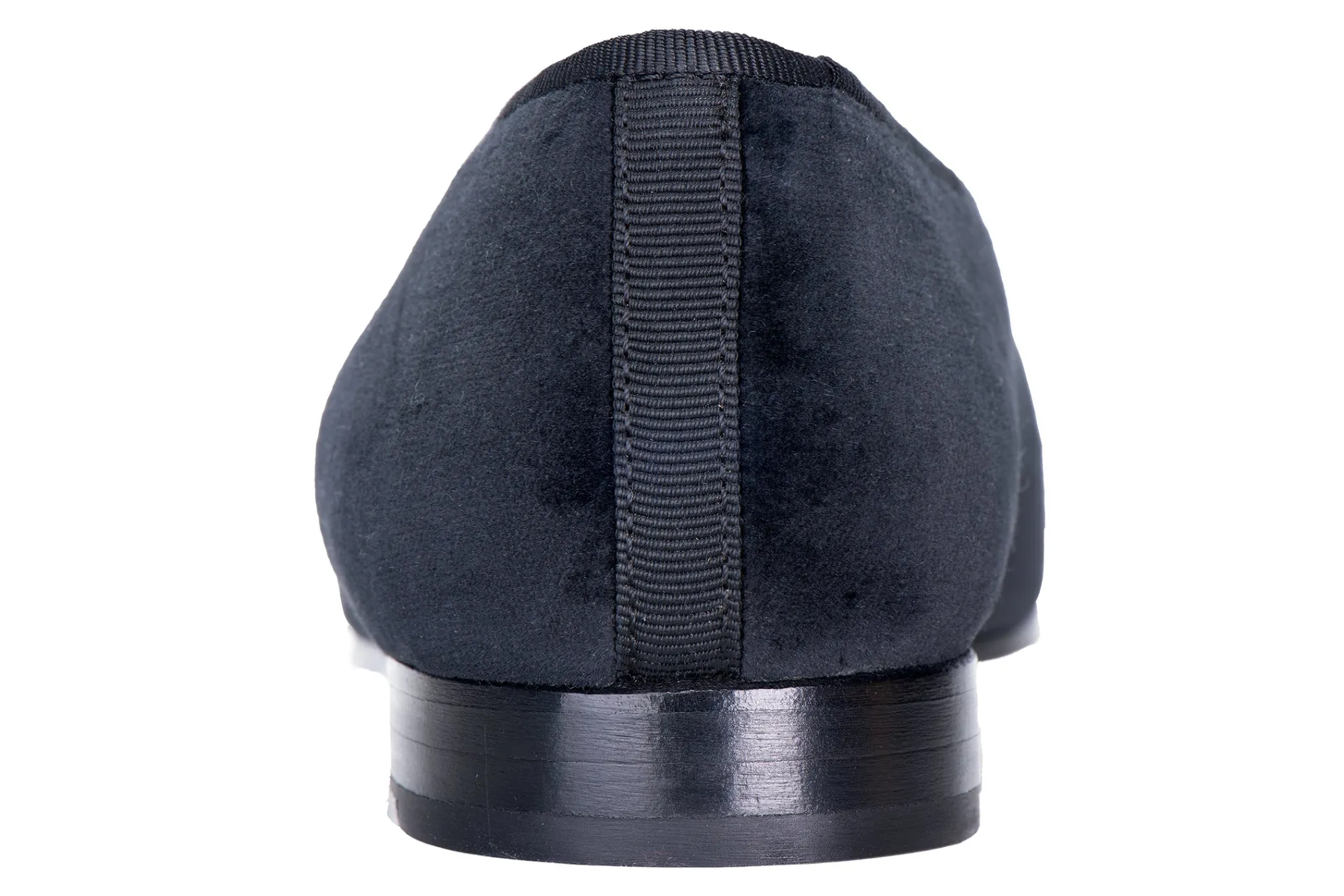 Leaping Cheetah is a signature pattern featuring cheetahs frolicking against a backdrop of saturated color. Our Cheetah Velvet Slipper features a BlackSea-Island Velvet Upper with a Black Grosgrain Trim, finished off with the Scalamandrè leaping Cheetah motifs. Meticulously Hand-crafted in Spain. Leather lined to provide additional support and comfort. The stacked wooden heel is .75 inches in height. Leather soled. True to American sizing.
