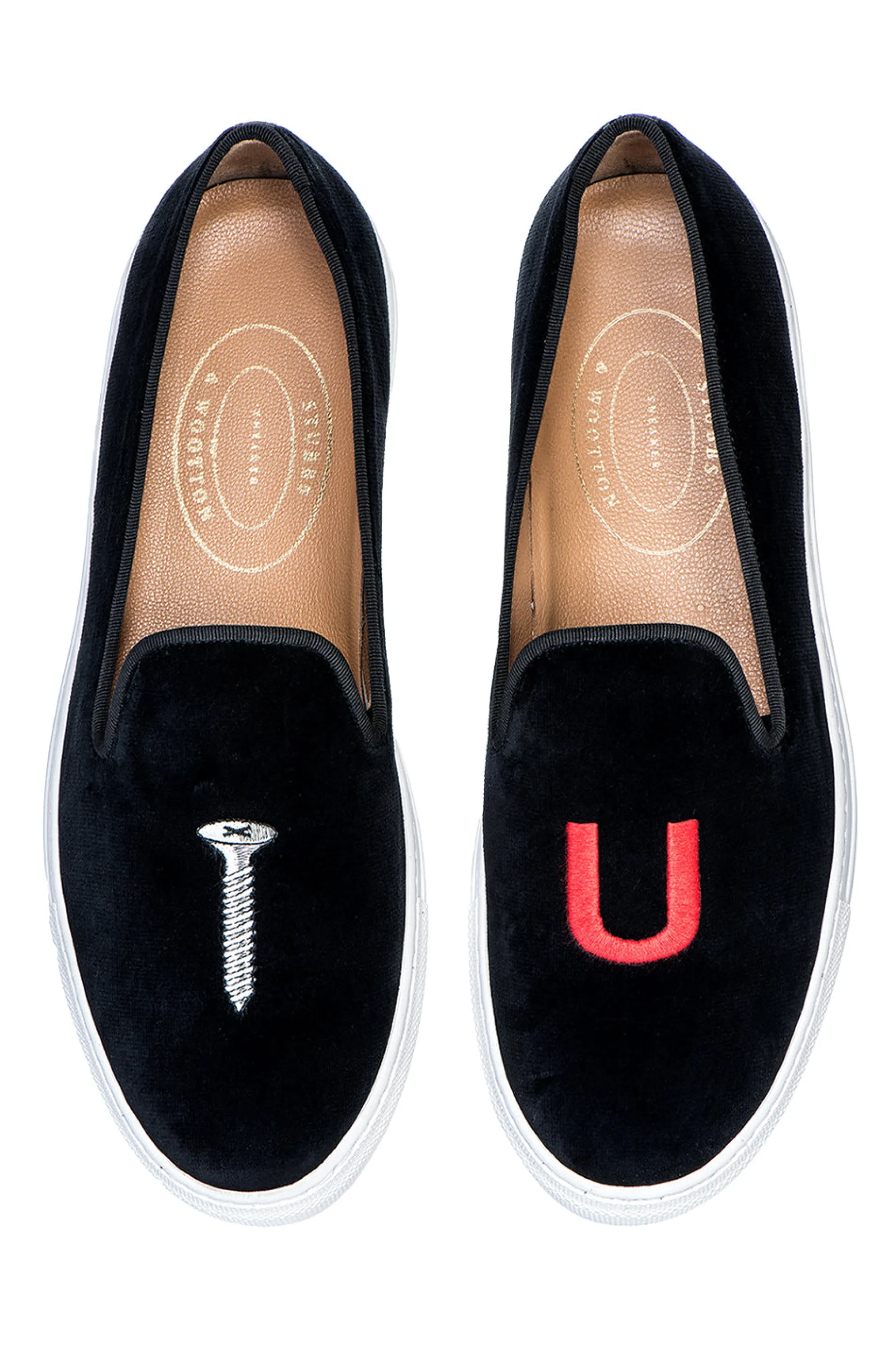 Our College Velvet Sneaker features a Black Spanish Cotton-Velvet Upper with a Black Grosgrain Trim. Finished off with our tongue in cheek “Screw You” embroidery. Meticulously Hand-crafted in Spain. Leather lined to provide additional support and comfort. The rubber sole is .75 in height. We recommend going half a size down, if between sizes.