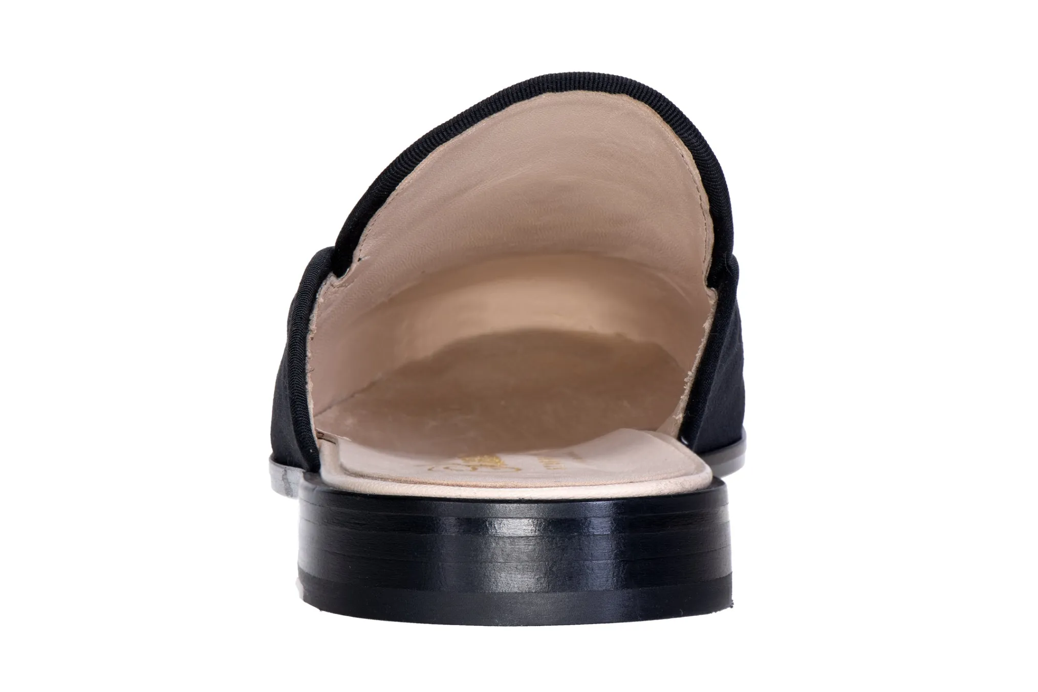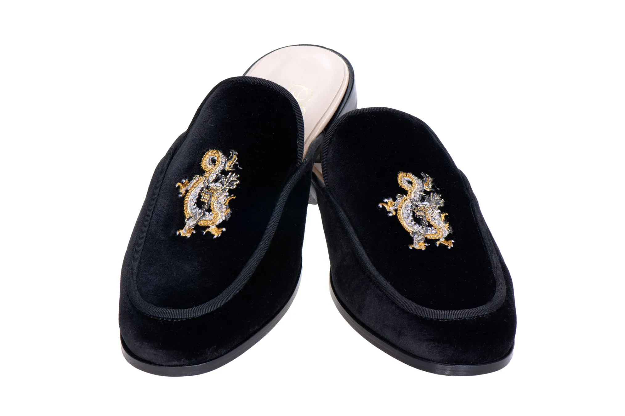 In honor of our long standing partnership with Scalamandré , we would love to introduce the Year of the Dragon collaboration. Utilizing Scalamandré’s brocade jacquard fabric created in partnership with The Met museum, we have created multiple styles to accompany your wardrobe. The inspiration for the brocade was from a woven scroll cover produced to accompany the Qianlong emperor’s calligraphy, the fabric celebrates the visual culture of the Qing dynasty, the last in China’s imperial history. In Chinese culture, the dragon represents good luck, strength, and health. Our Dragon Noir Train Mule features a rich cotton-silk black velvet with a harmonizing black grosgrain. Meticulously Hand-crafted in Spain. Leather lined to provide additional support and comfort. The stacked wooden heel is 3/4″ in height. Leather soled. True to American sizing.