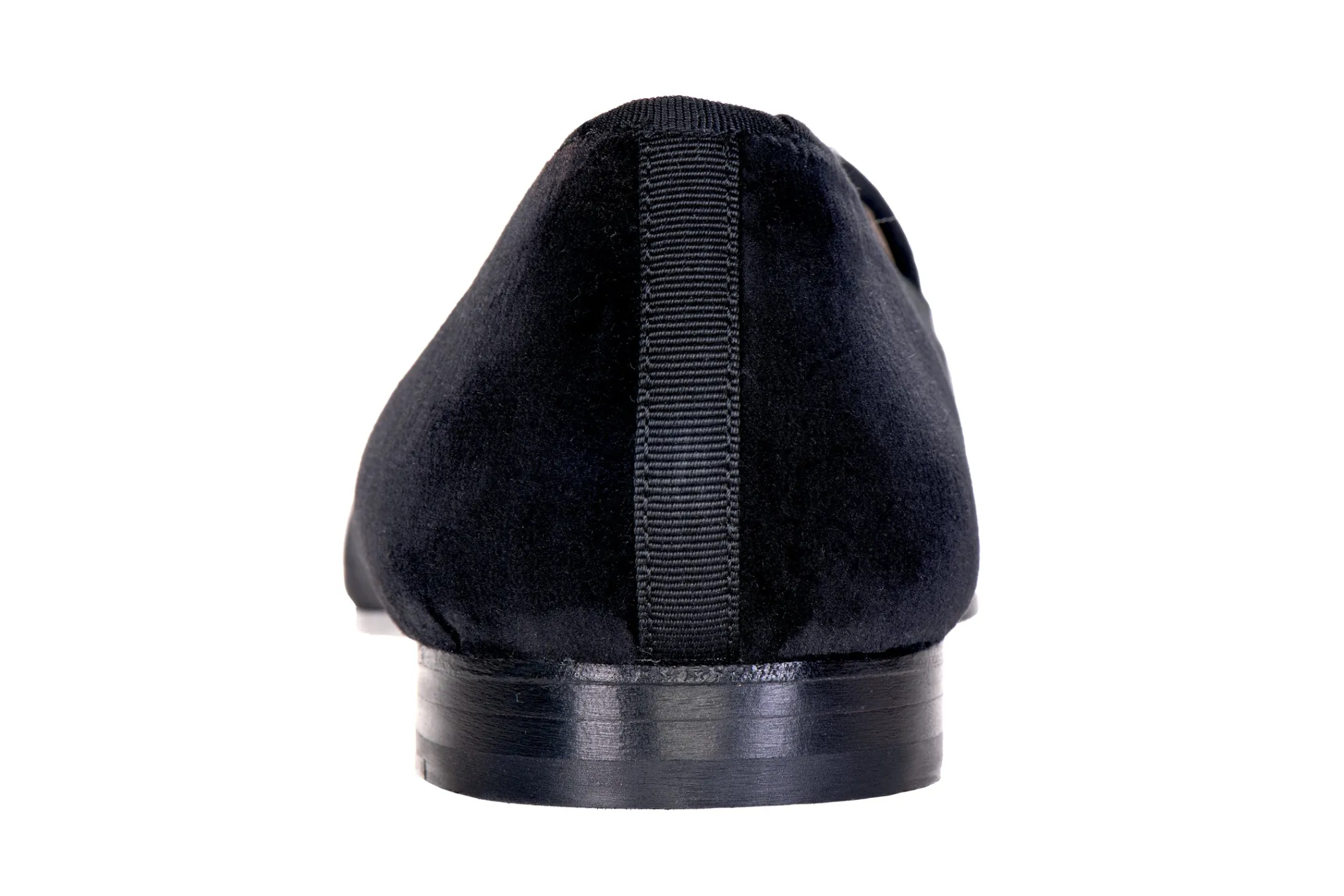 Kintsugi, is the Japanese art of repairing broken pottery by mending the breakage with powdered gold. Our Kintsugi Noir slipper features a rich cotton velvet fabric with a tonal black grosgrain adorned with our gold filament embroidery. Meticulously Hand-crafted in Spain. Leather lined to provide additional support and comfort. The stacked wooden heel is 3/4″ in height. Leather soled. True to American sizing.